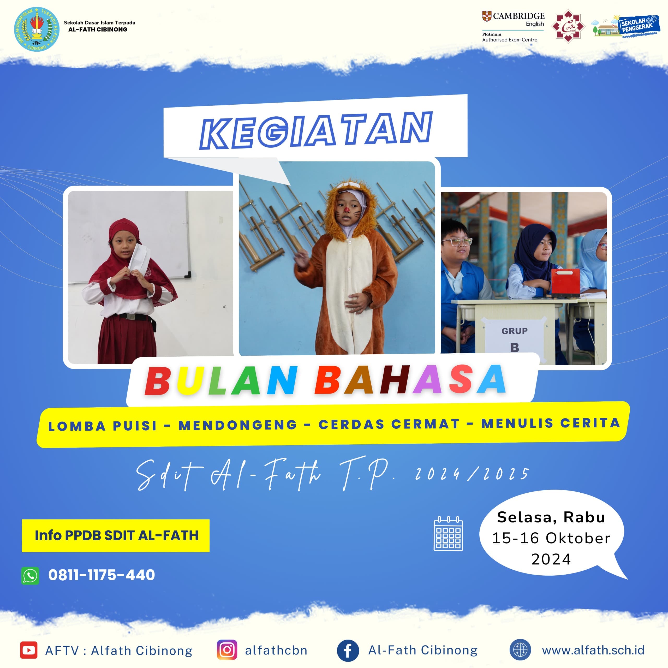 SD IT AL-FATH FESTIVAL 2024 | THE GUARDIAN OF NUSANTARA See You OnOctober 24th to 26th, 2024 Informasi Pendaftaran WhatsApp : +62 811 1175 440Instagram: alfathcbnYouTube: AFTV : Al-Fath CibinongWebsite:www.alfath.sch.idemail:[…]