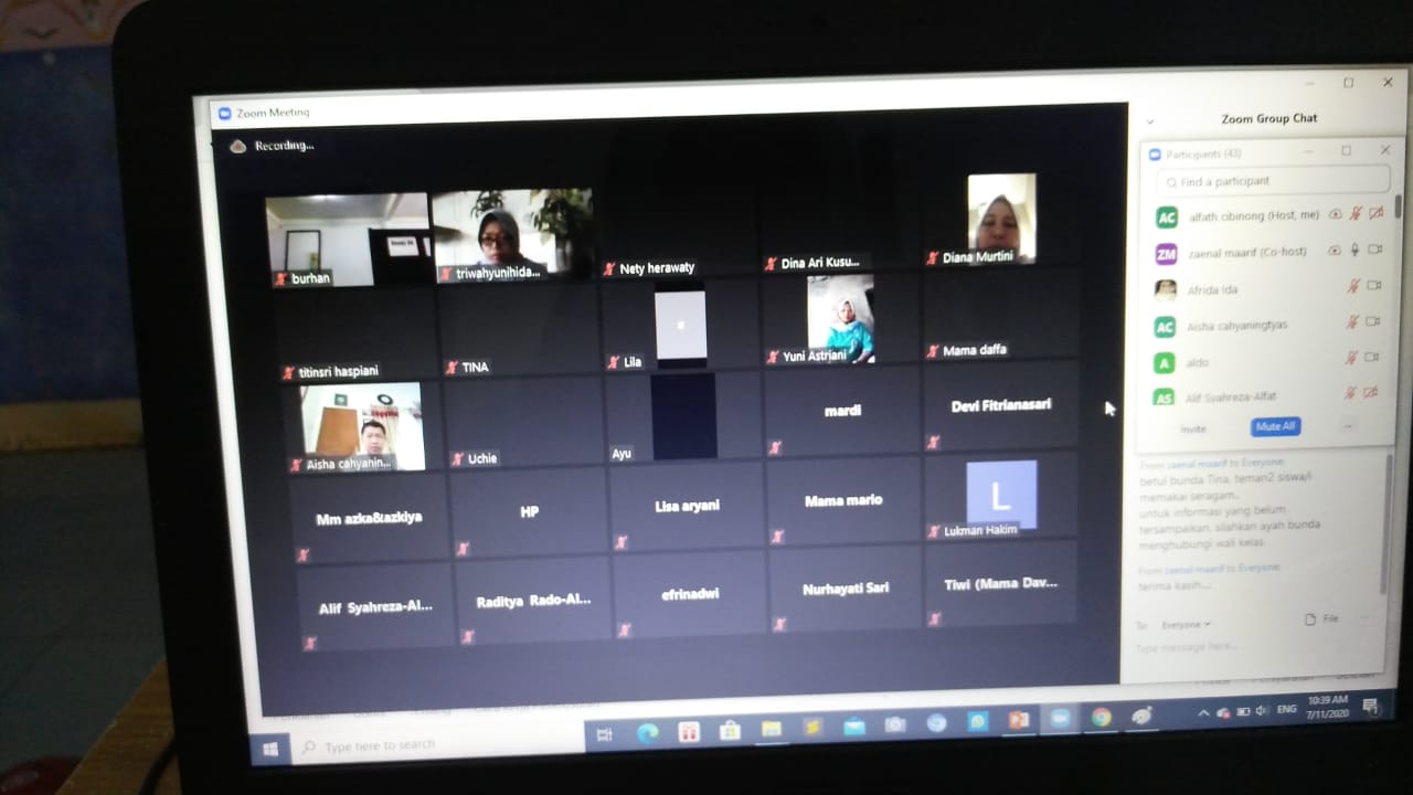 Pertemuan Online Pertama orangtua murid, siswa dan guru dalam sosialisasi pembelajaran secara online. Pada hari sab’tu 11 Juli 2020